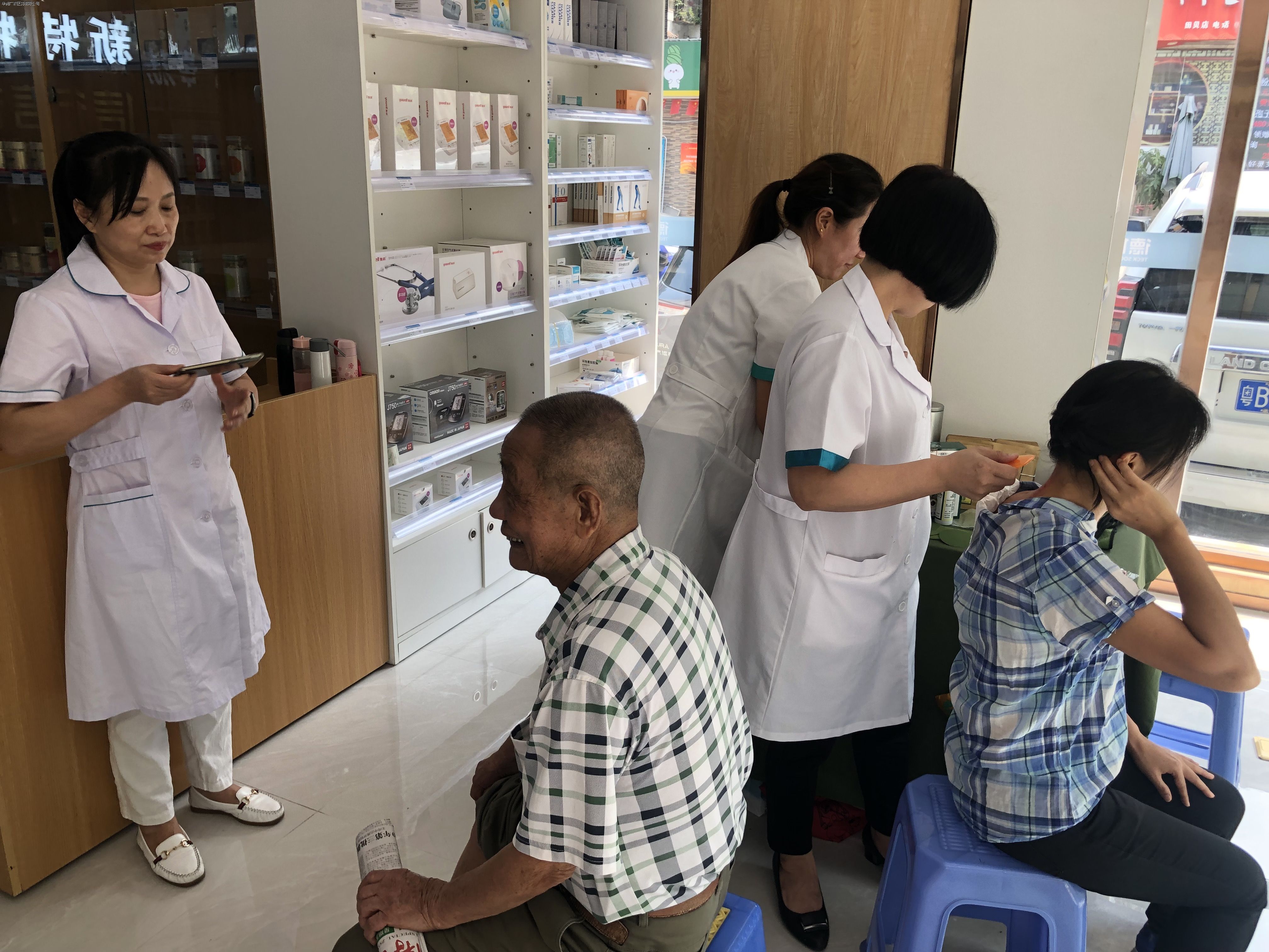 活動當(dāng)日,藥店內(nèi)設(shè)置了潤•YAO行動-愛心服務(wù)站”,分為免費測血糖及免費艾灸理療兩個區(qū)域,店內(nèi)執(zhí)業(yè)藥師利用血糖儀為客人測量血糖,并根據(jù)檢測結(jié)果給予專業(yè)藥學(xué)建議。理療師則負(fù)責(zé)肩頸腰腿不適的客人針對其患處進行艾灸理療。此次活動獲得了周邊街坊廣泛好評,到店客人可根據(jù)自身需要選擇相應(yīng)服務(wù)