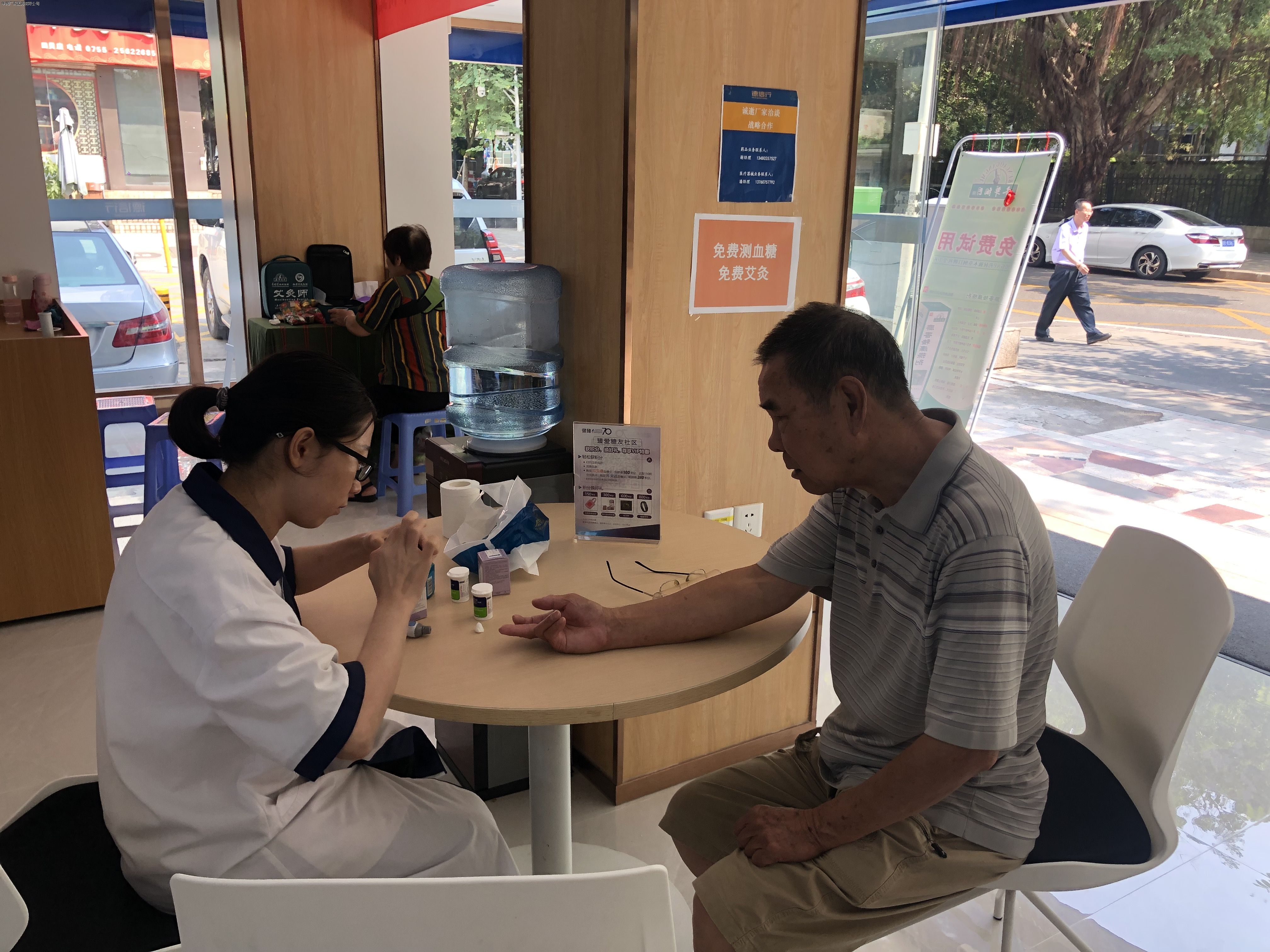 9月27日,華潤深圳醫(yī)藥有限公司聯(lián)合李時珍醫(yī)藥集團有限公司,在廣東德信行大藥房深圳翠竹分店開展為期一天的“潤•YAO行動-愛心服務(wù)站”公益活動,為藥店周邊社區(qū)群眾提供免費艾灸及免費測血糖服務(wù) 。