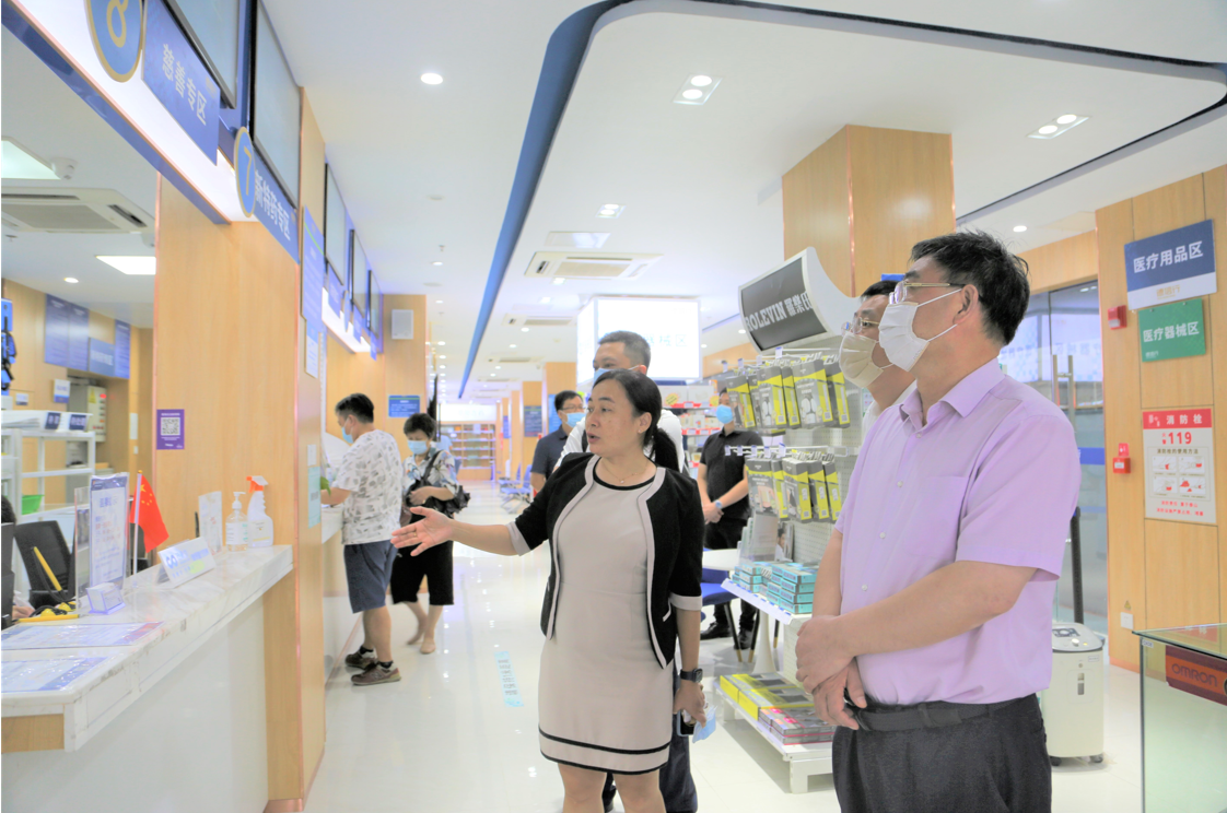 會(huì)后,一行領(lǐng)導(dǎo)前往廣東德信行大藥房連鎖有限公司旗艦店進(jìn)行實(shí)地調(diào)研。調(diào)研期間,領(lǐng)導(dǎo)們詳細(xì)了解了德信行大藥房的處方審核、患者管理、慈善援助藥品發(fā)放以及互聯(lián)網(wǎng)醫(yī)院處方外配的全流程管理,對德信行的管理水平給予了肯定。